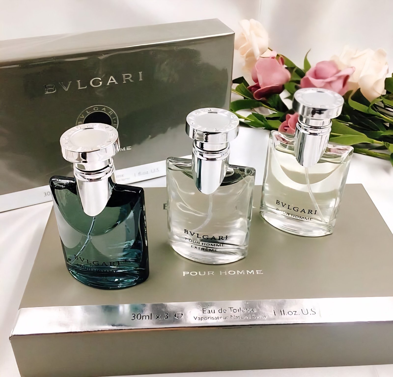 مجموعة عطر بولغاري للرجال (Bvlgari PourHomme) is a perfume set that features its wooden and aromatic scents.
