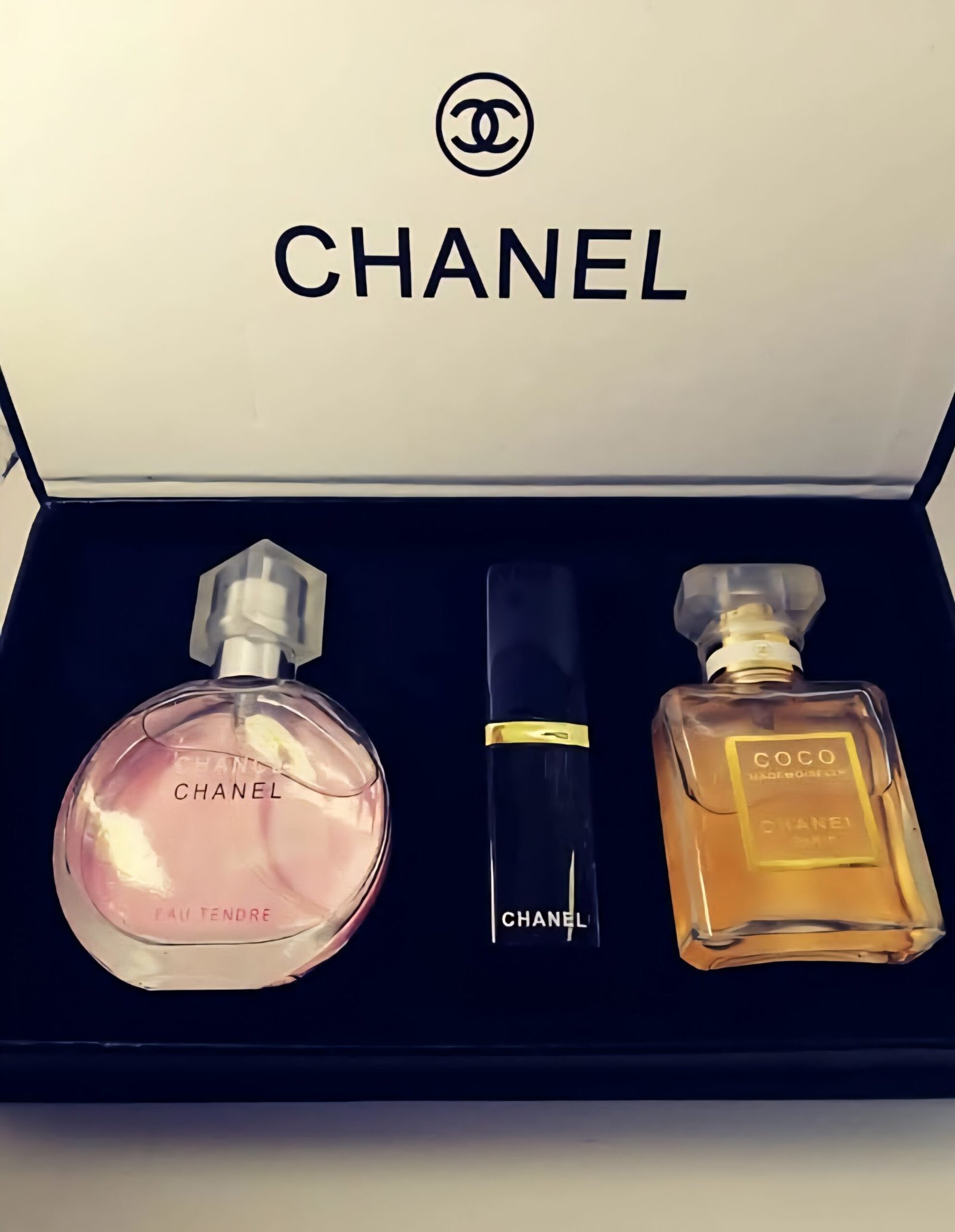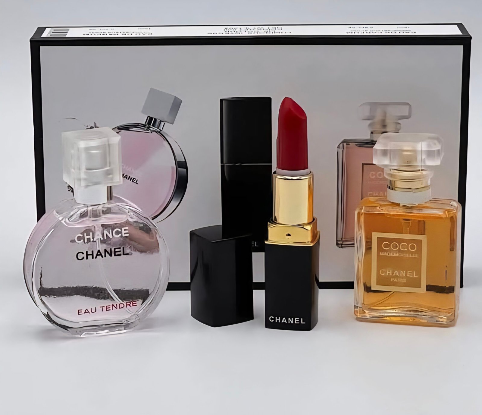 Lipstick: Part of the set, and shows a classic red color.